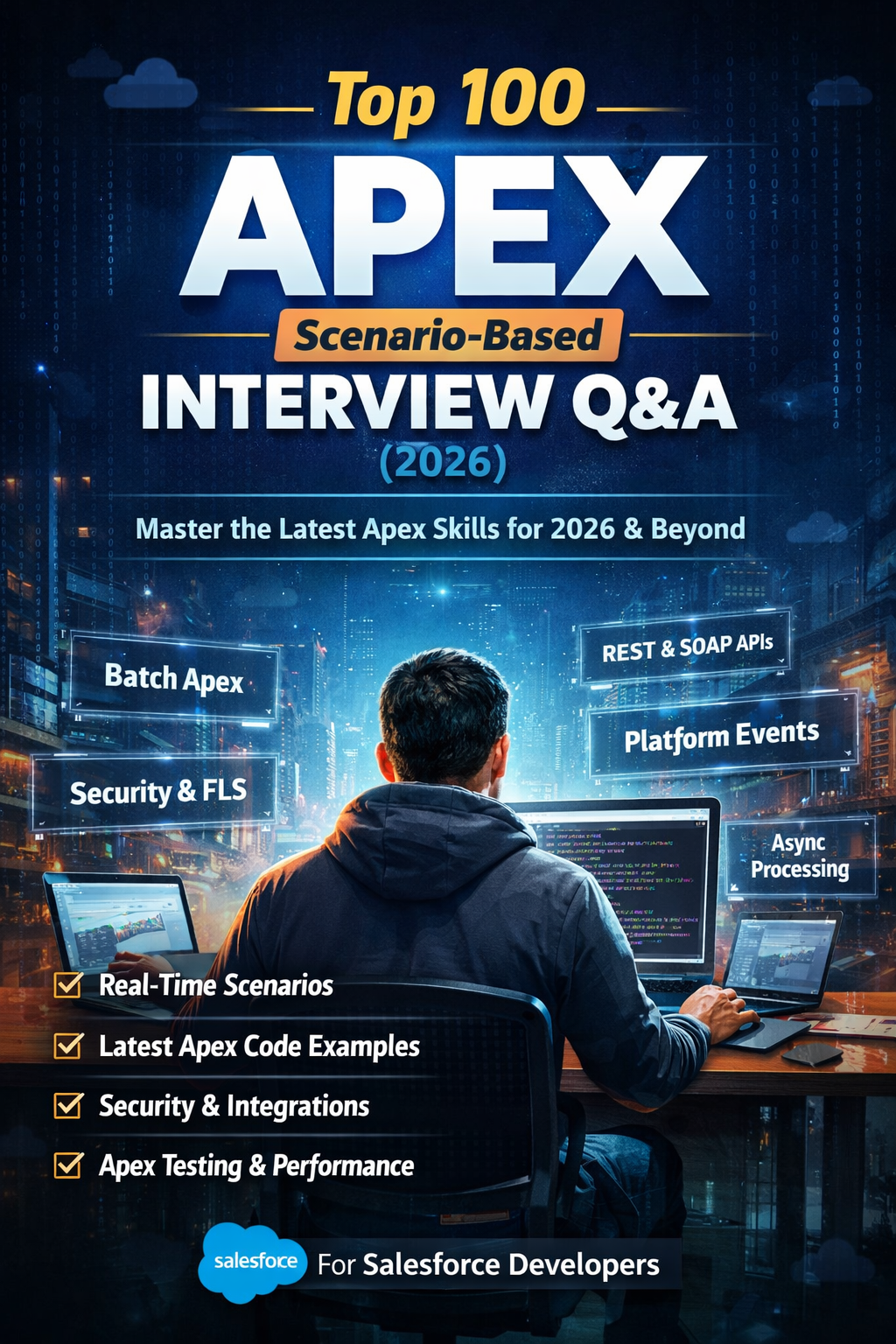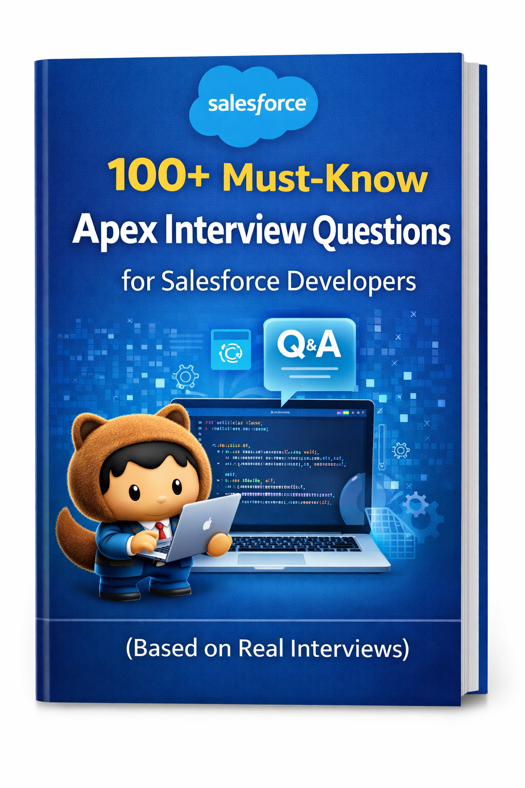 “100+ Must-Know Apex Interview Questions for Salesforce Developers (Based on Real Interviews)” is your definitive guide to mastering Apex interviews. Curated from real-life recruiter calls and technical screenings, this book gives you a behind-the-scenes look at what interviewers are actually asking in 2026 — and how to answer with confidence.