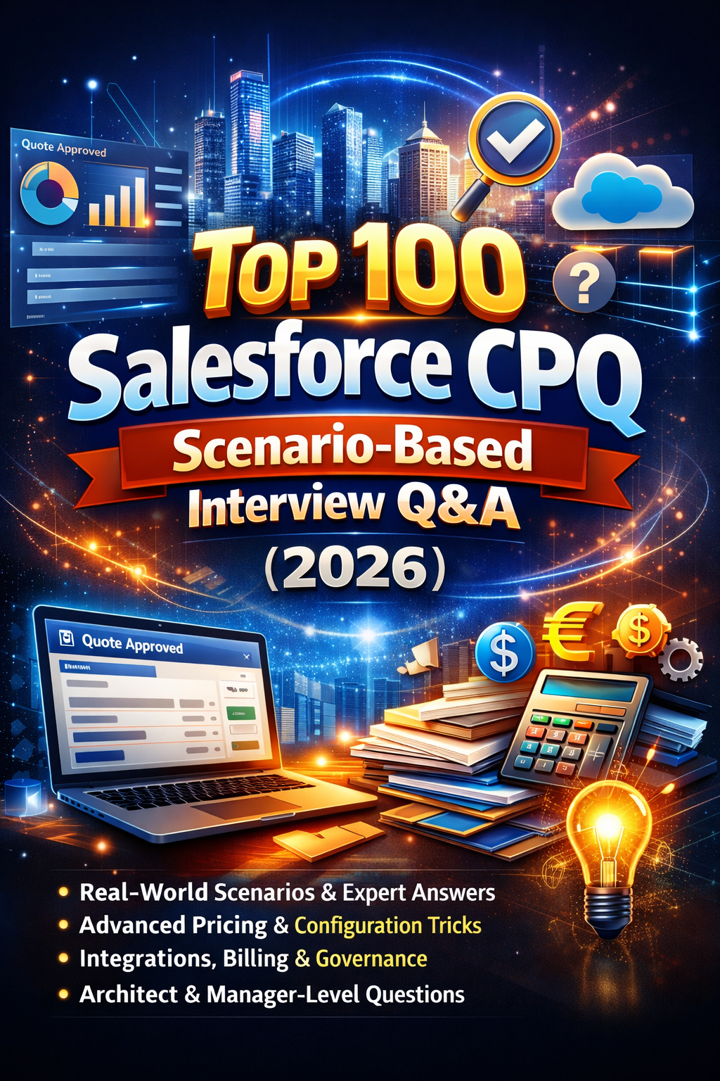 Step into the interview room before you even arrive with this powerful collection of 100 real Salesforce CPQ interview questions — shared directly from successful candidates and interviewers at top firms like Salesforce, Accenture, Deloitte, IBM, TCS, Infosys, Cognizant, and more.